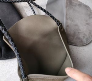 今年の秋の新作バッグ、シープスエードのポシェットです。