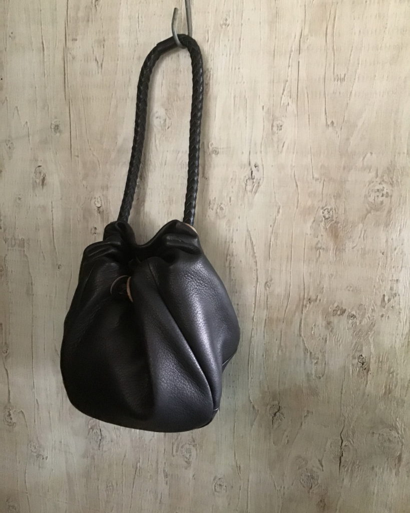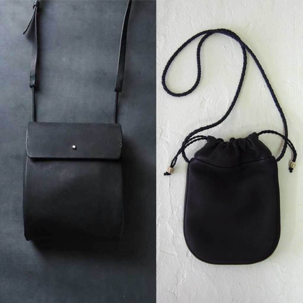 鹿革「巾着ポシェット」 ブラック・ダークブラウン