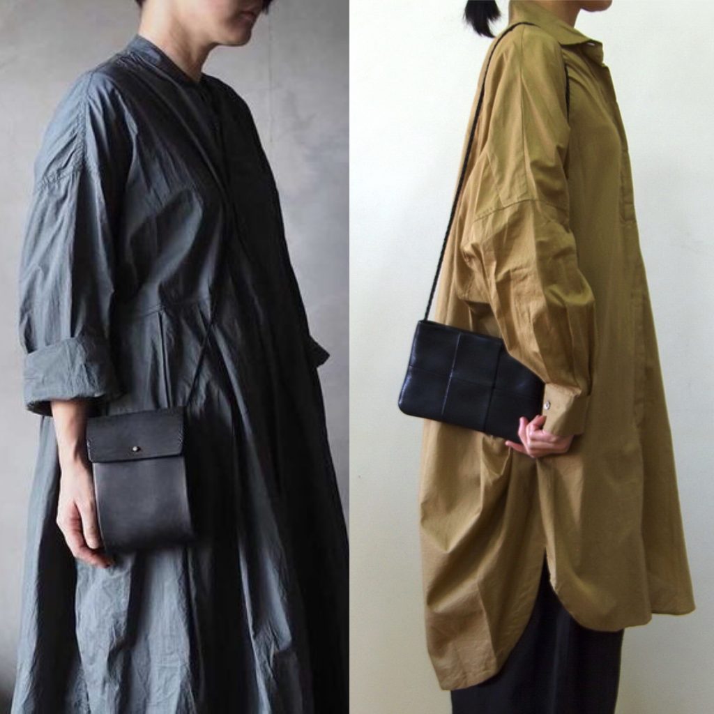 山羊革「フラットショルダー Sサイズ」 ブラック・ダークカーキ