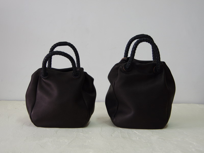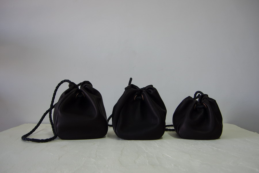 鹿革巾着バッグ各サイズと、山羊革バッグ、牛革バッグ