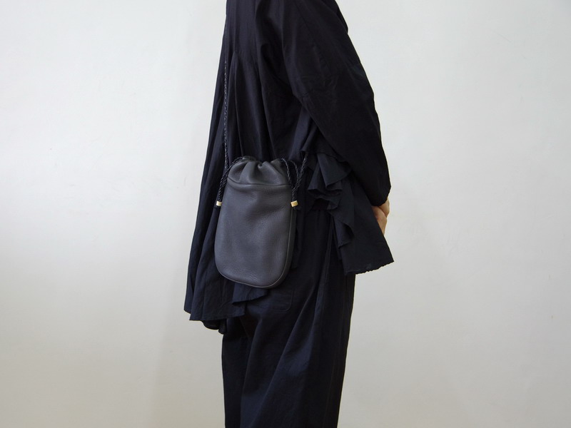 巾着ポシェット 黒、こげ茶、チャコールグレー