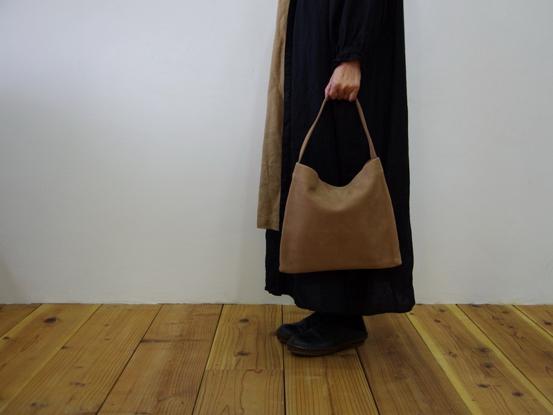 定番の鹿革巾着バッグ各サイズと、山羊革バッグのシリーズ、