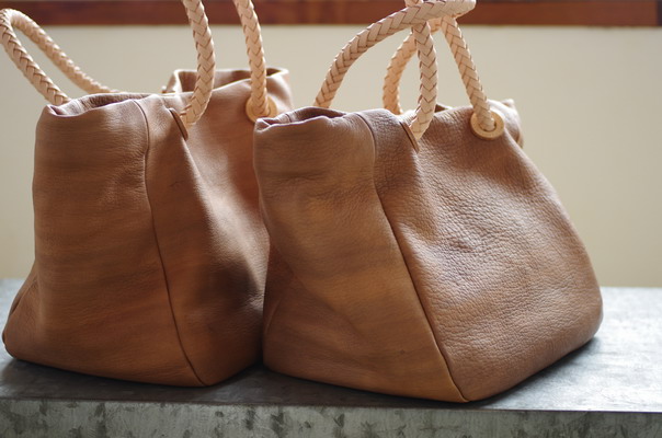 ほかにも、昨年はなかった山羊革のシリーズも、巾着トートMSサイズも、持って行きます。