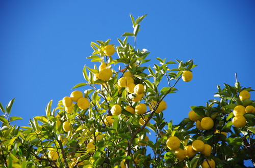 お隣の家にたわわに実るゆずの黄色がとてもきれいです。
