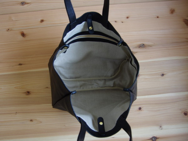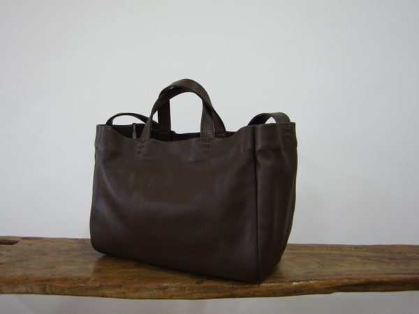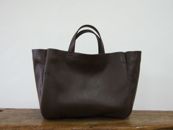 | 商品内容 | 柔らかくコシがあって、表面のシボが独特な、タンニン鞣し素上げの山羊革を使ったシンプルなトートバッグ。 ハンドル部分はハンドステッチでしっかり留めています。 内側の25cmファスナーポケットには、大きめの長財布も入ります。 両サイド内側にパッチポケットがついて、水筒などを入れるのに便利。 底に向かってマチが細くなる変形マチです。 ショルダーを追加も可能です。 (ダークカーキの画像参照) ショルダー追加料金(S/Mのみ可) 税抜 +8,000円(+税800) ショルダー幅:35㎜ × 長さ:72㎝ ハンドルの長さは3種類。 A=50cm・B=41cm・C=25cm A:上着を着て肩にかけるのに支障のない長さ B:ギリギリ肩にかかり、手持ちでもOKな長さ C:肩にかからない長さ → スタイルフォトをご参照ください。 ※ご注文時に、ハンドルの種類と長さをご明記ください。 上画像のハンドルは、DBR(廃番色)=A、BK=B、DKH=C がついています。 |