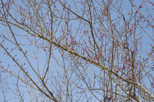 久しぶりに会う友人宅へを訪れ、庭の大きな梅の木と、今年最後の雪を見て、