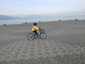 家の周りは坂道だらけで、自転車の練習はわざわざ広い公園へいかなければならず、