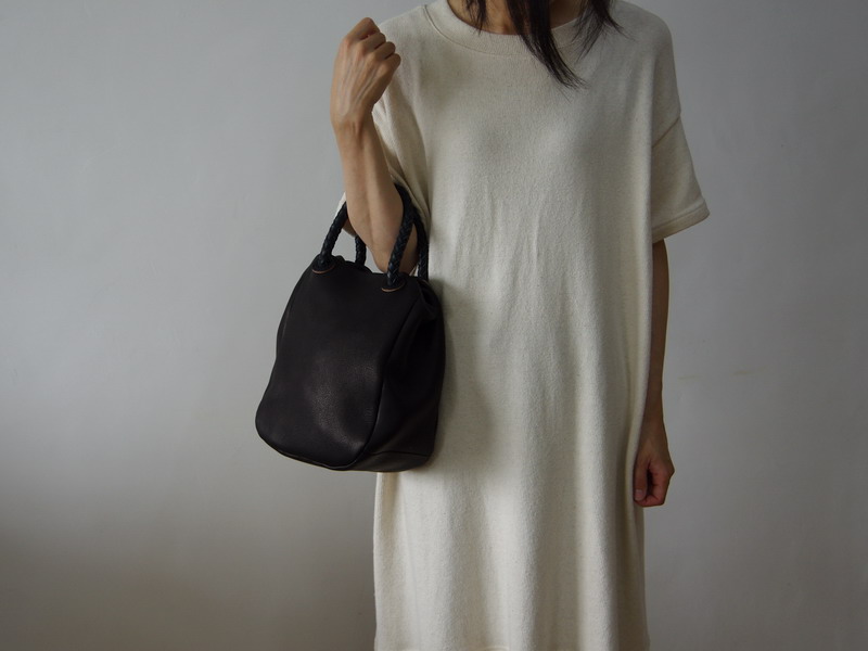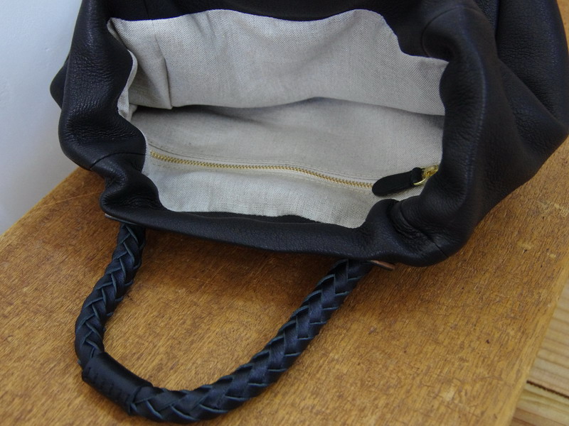 新作の巾着バッグは、中のポケットもS~Mサイズと同じ仕様で、シンプルな構造の2WAYタイプです。