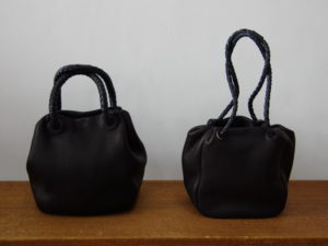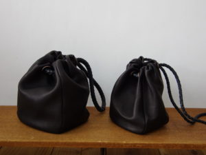 ゴート(山羊革)でも試してみたのですが、やっぱり巾着の形と構造は鹿革にぴったりなので、鹿革で商品化することになりました。