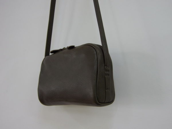 | 商品内容 | 柔らかくコシがあって表面のシボが独特な、山羊革を使ったダブルジップ開きのショルダーバッグ。 細い短めショルダーは斜めがけにもできます。(ジップショルダーMサイズよりも10㎝短いです。ショルダー長さ+10cmまで変更可(無料)、短くも対応します。) ショルダー継目部分とショルダー付け、ポケット口のハンドステッチがポイント。 底に継ぎのない仕様で、背面裏にはホックでとめるタイプのポケット付き。大きめスマートフォンも入ります。 中には長財布が入るサイズで、内側両面にパッチポケットが3個ついており、小物が仕分けられます。(長財布の大きいものは出し入れしにくくなります。) シンメトリックエレメントのダブルジップタイプのファスナーは、スライダーの滑りがスムーズで、エレメント(ムシ)の形状がスマートです。 (画像の最後の2枚は[左]Mと[右]Sを並べて大きさを比較しています) ※山羊革は小さいため、大きい面を使う本体部分に細かいキズなどは避けられません。キズなどはできるだけ背面側に入るように裁断していますので、ご理解のほどお願いいたします。 |