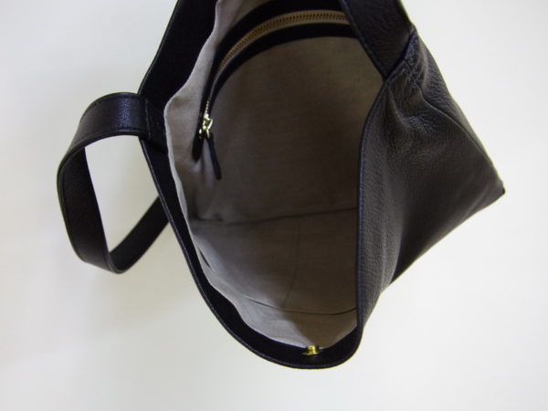 | 商品内容 | 柔らかくコシがあって、表面のシボが独特な、タンニン鞣し素上げの山羊革を使った、底に接ぎのない一枚革のシンプルなバッグ。タブレット等を持ち歩くのにも便利なマチのないタイプのバッグです。ショルダーは斜め掛けにすると短め。 口部分は真鍮のホック留め。 内ポケット(前面側)大小のパッチポケット2個、(背面側)25cmファスナーポケット付き。 ※1 山羊革は小さいため、ダメージの少ないきれいで大きめな革を選んで裁断します。大きい面を使うため、細かいキズなどは避けられません。キズなどはできるだけ背面側に入るように裁断していますが、正面に入る場合もございます。 また、革の大きさが足りない等、素材の都合により製作できないこともございます。その場合は、適正な革が入荷するまで長期にお待ちいただく場合もございます。 恐れ入りますが、ご理解のほどお願いいたします。 ※2 A4サイズを入れると他のものは入りませんのでサイズをお選びいただく際はご注意ください。 ※3 外ポケットは廃番になり、2018年より内ポケットの仕様に変更しています。 |