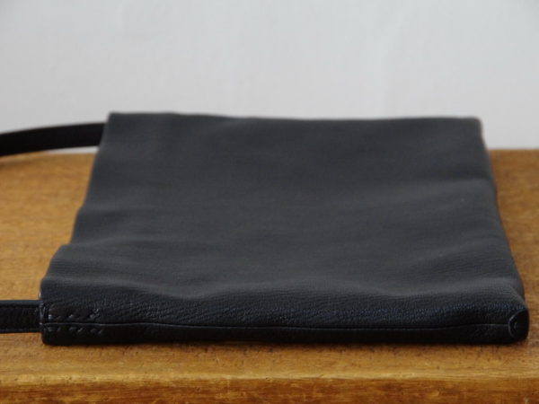 | 商品内容 | 柔らかくコシがあって、表面のシボが独特な、タンニン鞣し素上げの山羊革を使った、底に接ぎのない一枚革のシンプルなバッグ。マチのないフラットタイプのバッグです。ショルダーは斜め掛けにすると少し短めです。 口部分は真鍮のホック留め。 真鍮製のバックルで長さを調整できます。(3cmピッチで5個穴)バックルなしのタイプも製作可(税抜-3,000円) 内ポケット(前面側)大小のパッチポケット2個、(背面側)22cmファスナーポケット付き。 ※ 山羊革は小さいため、細かいキズなどは避けられない場合、できるだけ背面側に入るように裁断していますが、正面に入る場合もございますので、恐れ入りますが、ご理解のほどお願いいたします。 |
