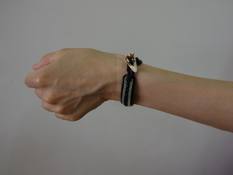 鹿革×鹿角「ピューター刺繍 ブレスレット」ブラック