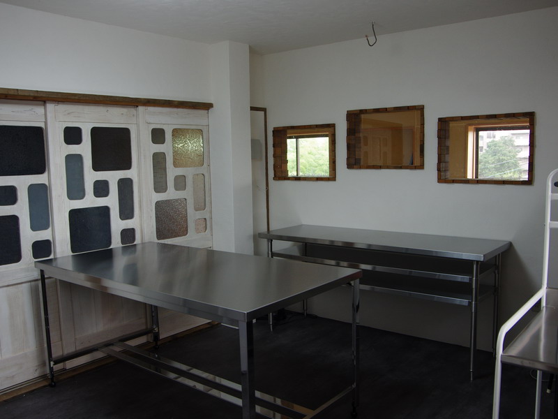 昨日ステンレスの作業台が入って、ひとまず厨房が完成!
