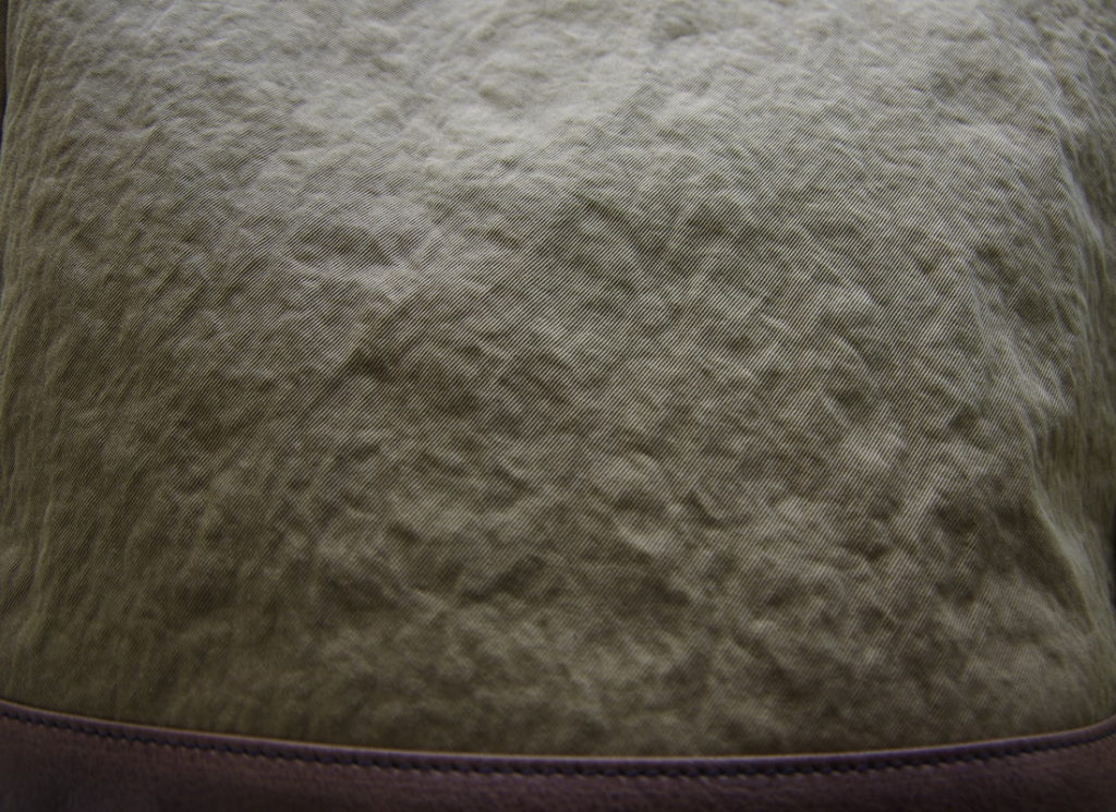 2年前に少し変わった生地が2反手に入りました。キャンバスのような、厚手でハリのあるナイロン生地。