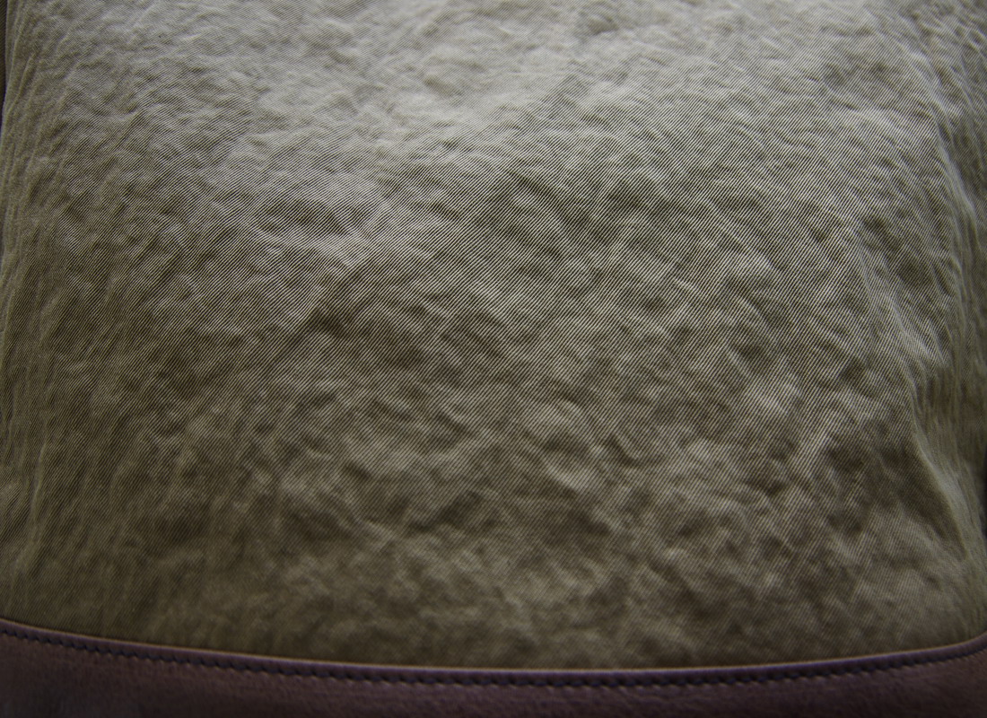 特殊ナイロンの性質である堅牢度、劣化耐久性、撥水性を保ちながら、キャンバスのような手触りと硬さ、なにより軽いうえに強い素材。