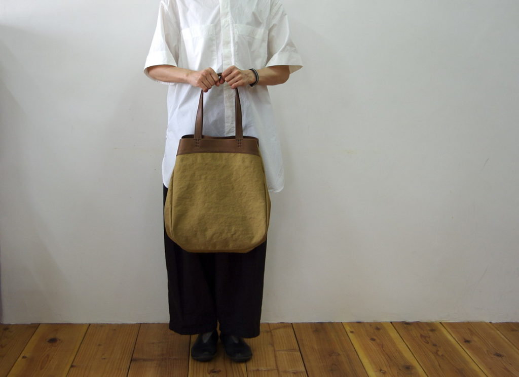 以前から山羊革でつくっている大きなトートバッグと同じかたちです。