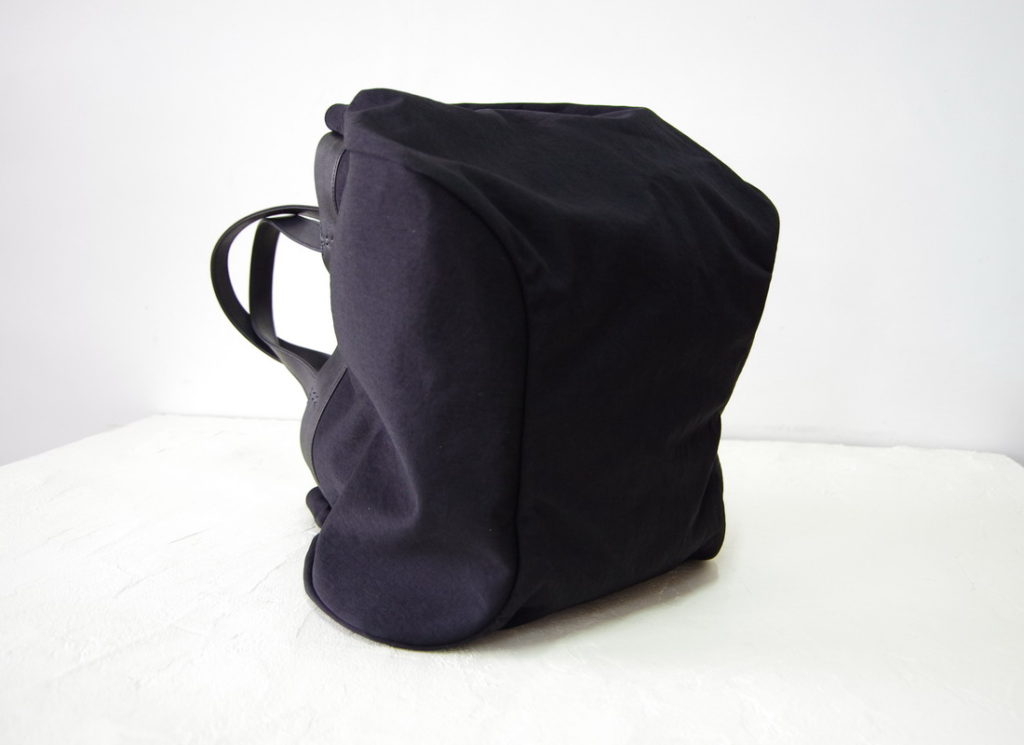 その後山羊革で商品化したのですが、山羊革は牛革に比べて軽い革ではあるものの、オールレザーではどうしても本体自体が重くなってしまい、出番の少ないバッグになってしまうかなと思っていました。