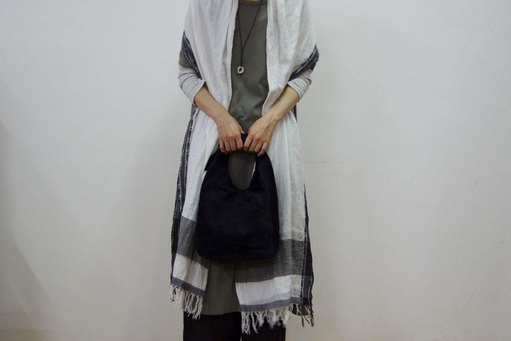 肩にかけたり手に持ったり、好みにあわせて結びます。
