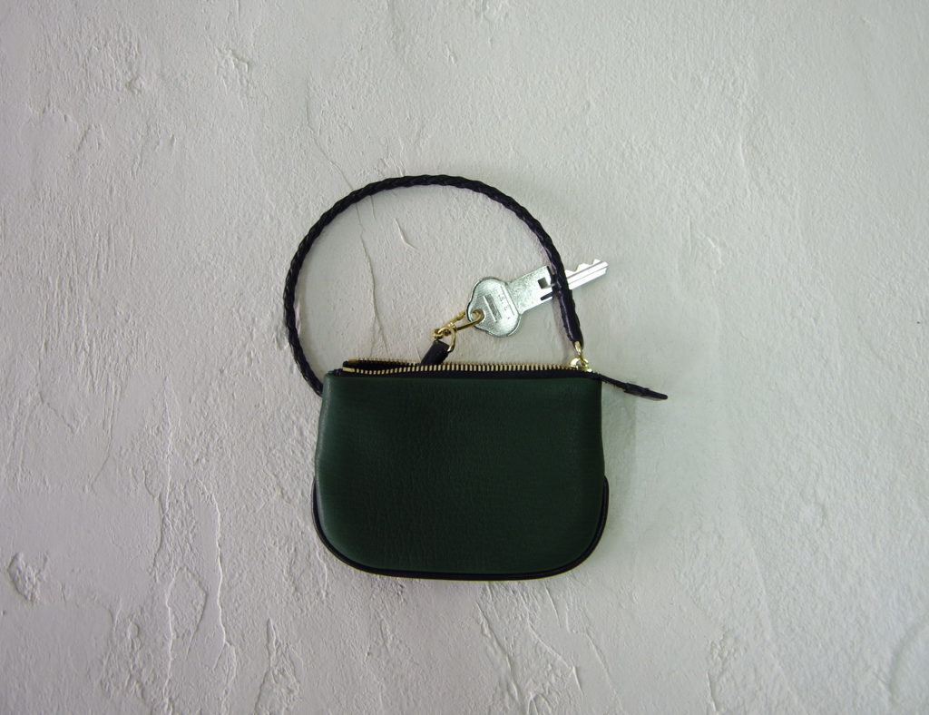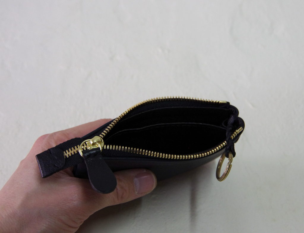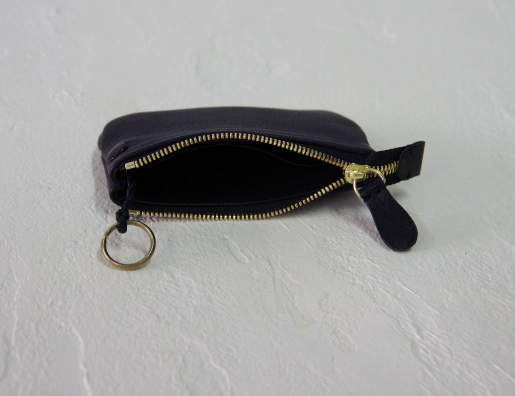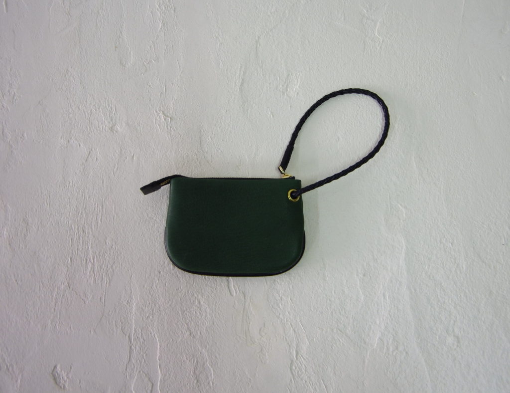 ファスナーのスライダーにつながったストラップは鹿革の細い丸編み紐。