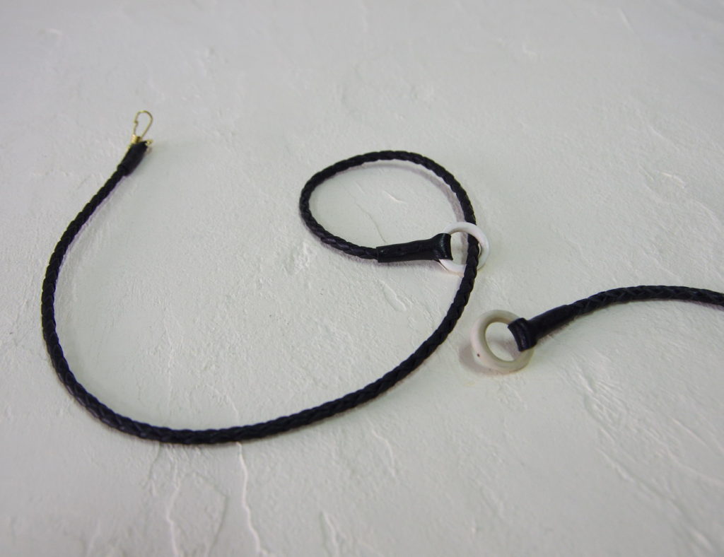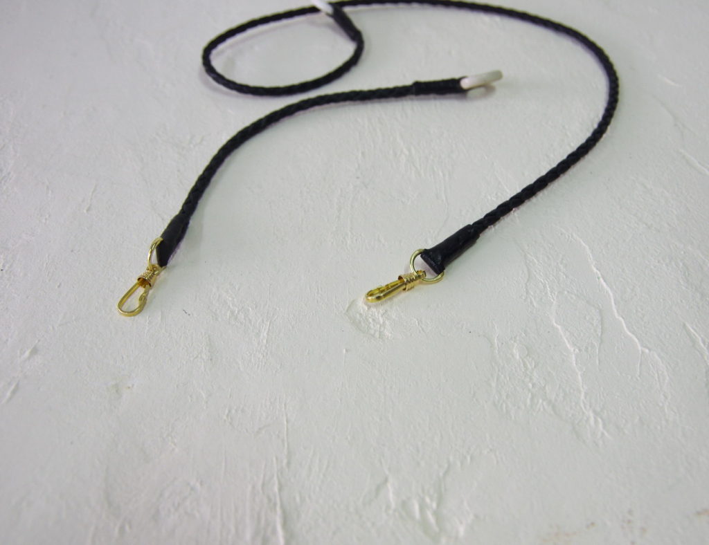 紐の色は黒のみ、紐をくるむ牛革は、黒・ブラウンの2色からお選びいただけます。