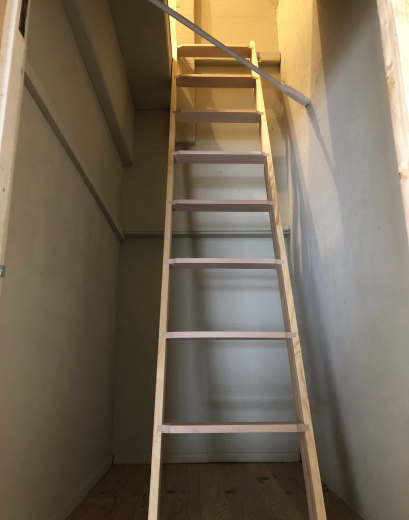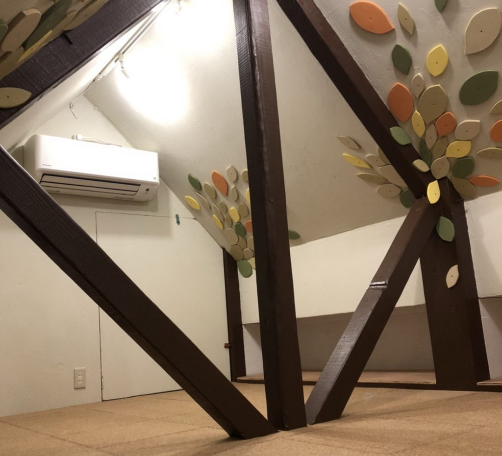 この建物はちょっと変わった構造で、鉄骨造りの高い天井と屋根裏、床のすごく太い基礎木材、