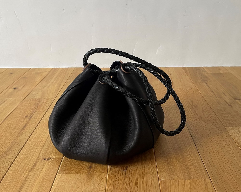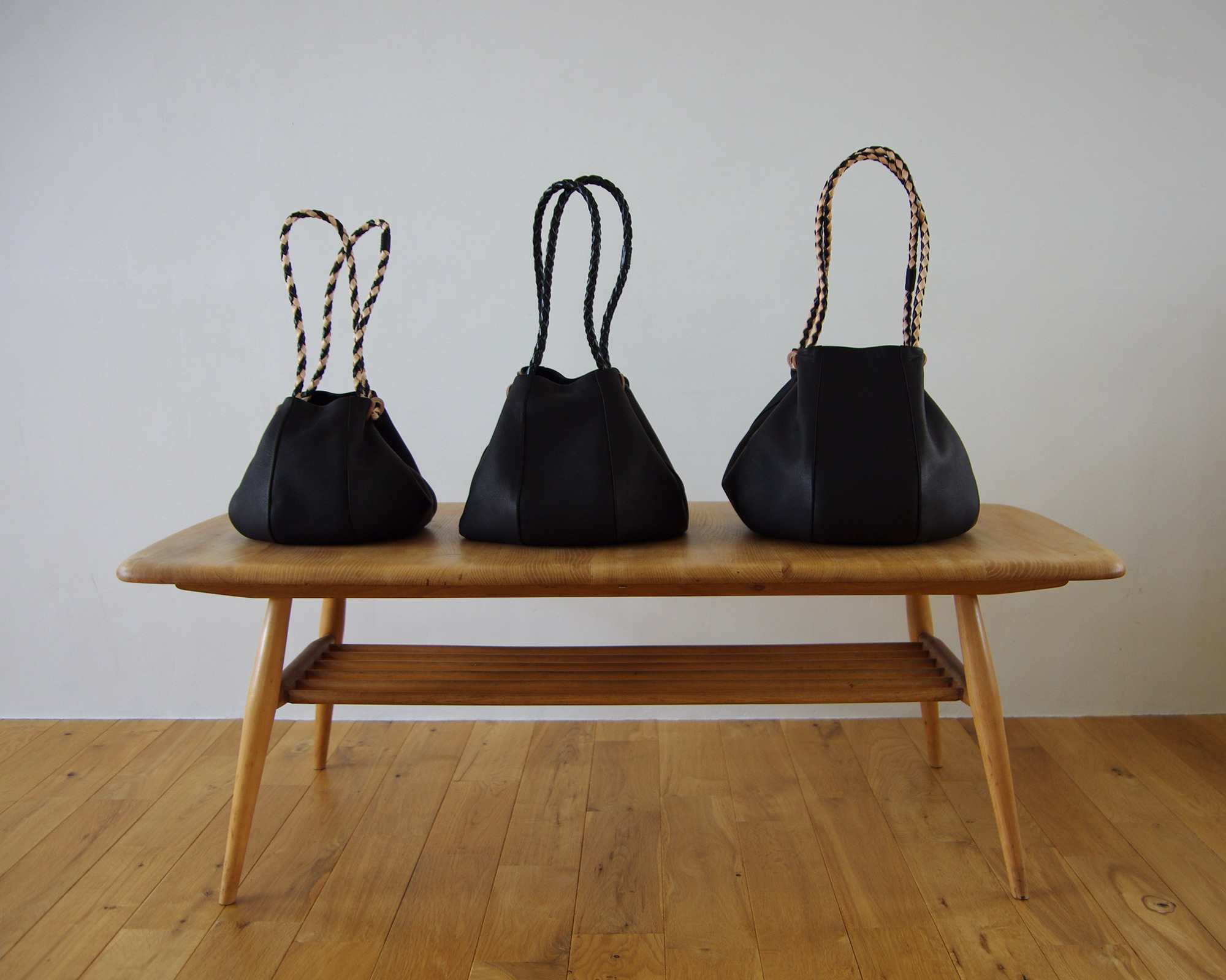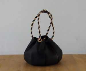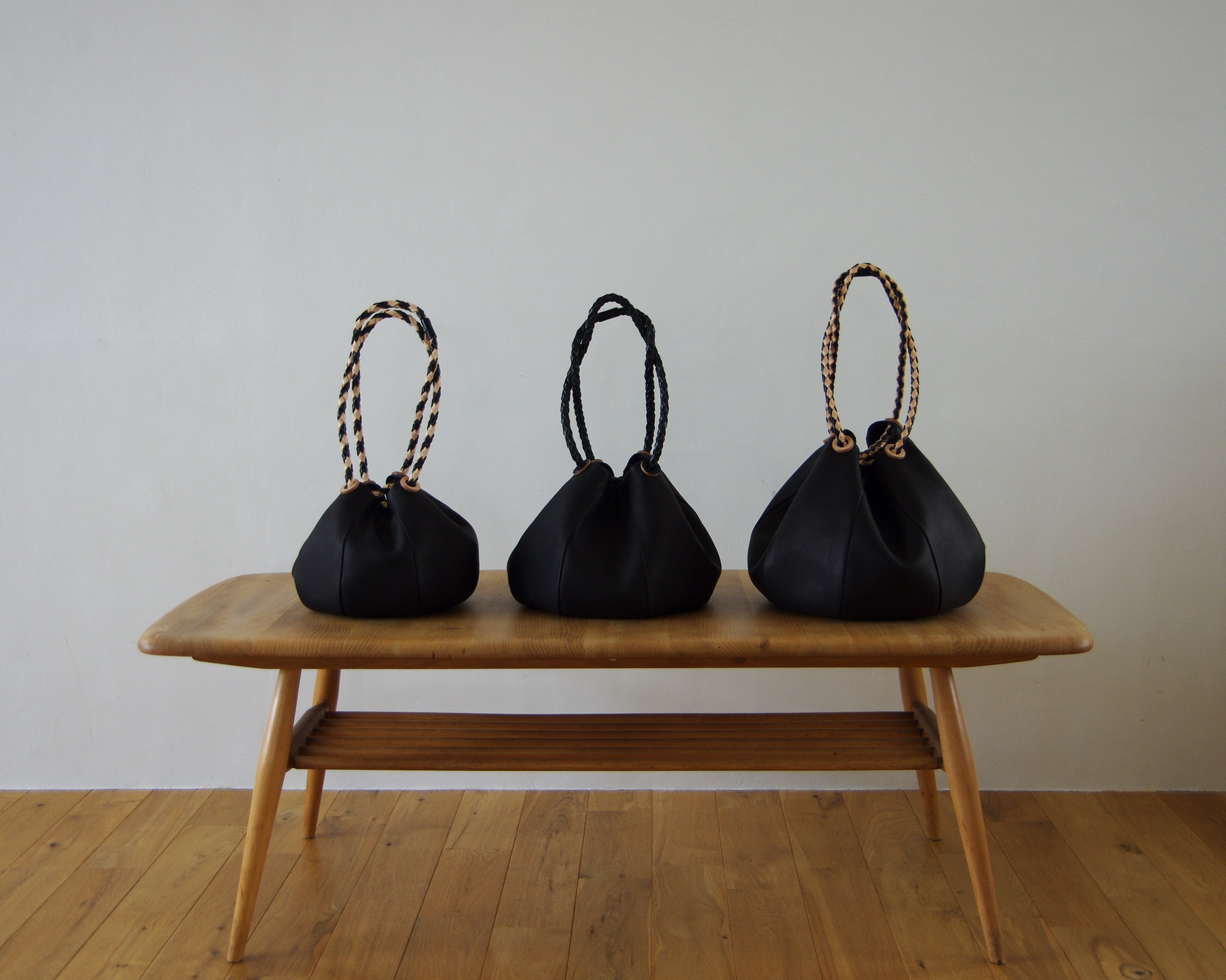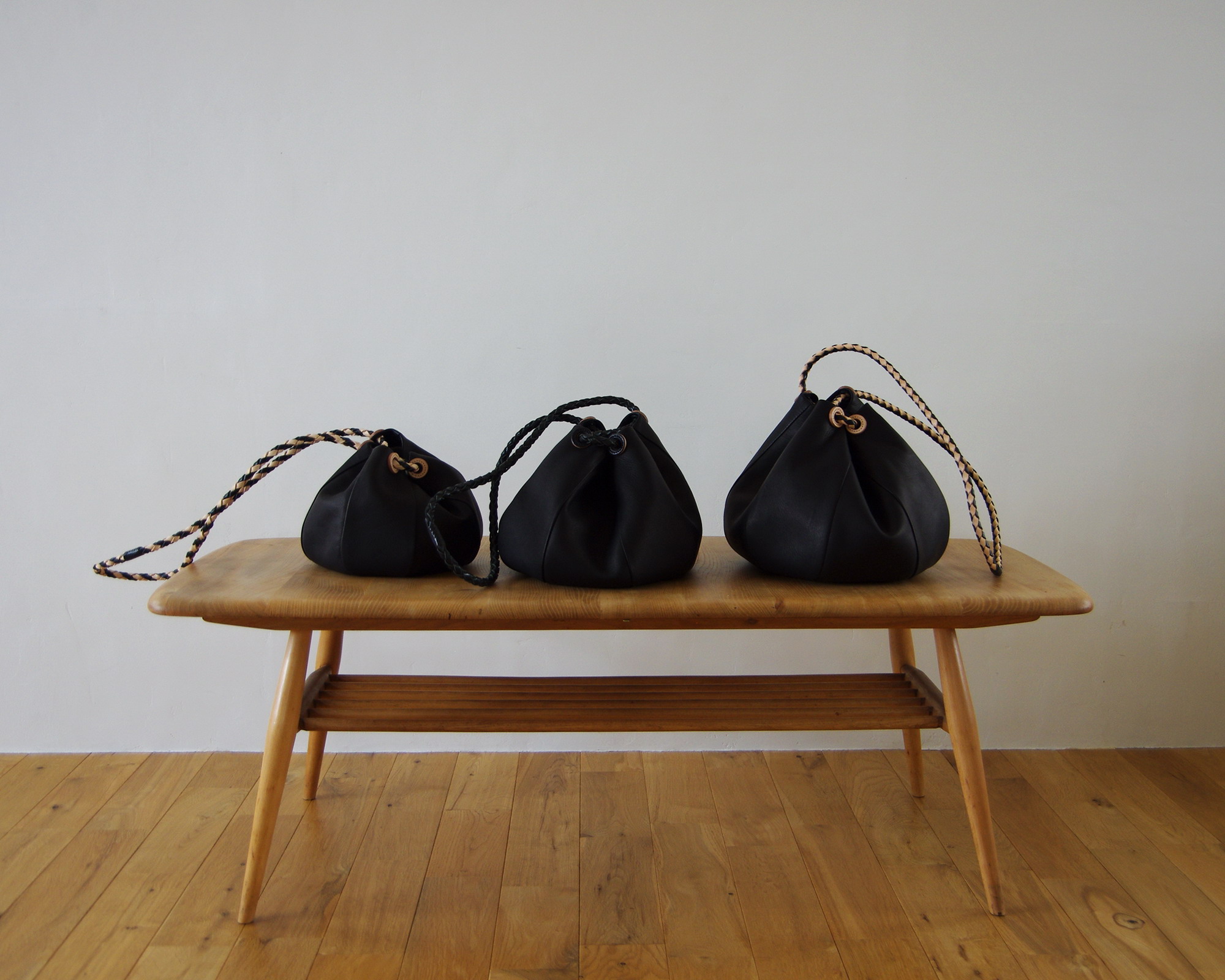 じゃあハンドルはどうするか、バッグ口の開閉はどうするのか、ファスナーや金具や何かパーツを使うのか、かたちや大きさのバランスはどうなのか、話し合いながら試行錯誤の時間を経て、結局は巾着型が最適なんだろうとの結論に至りました。
