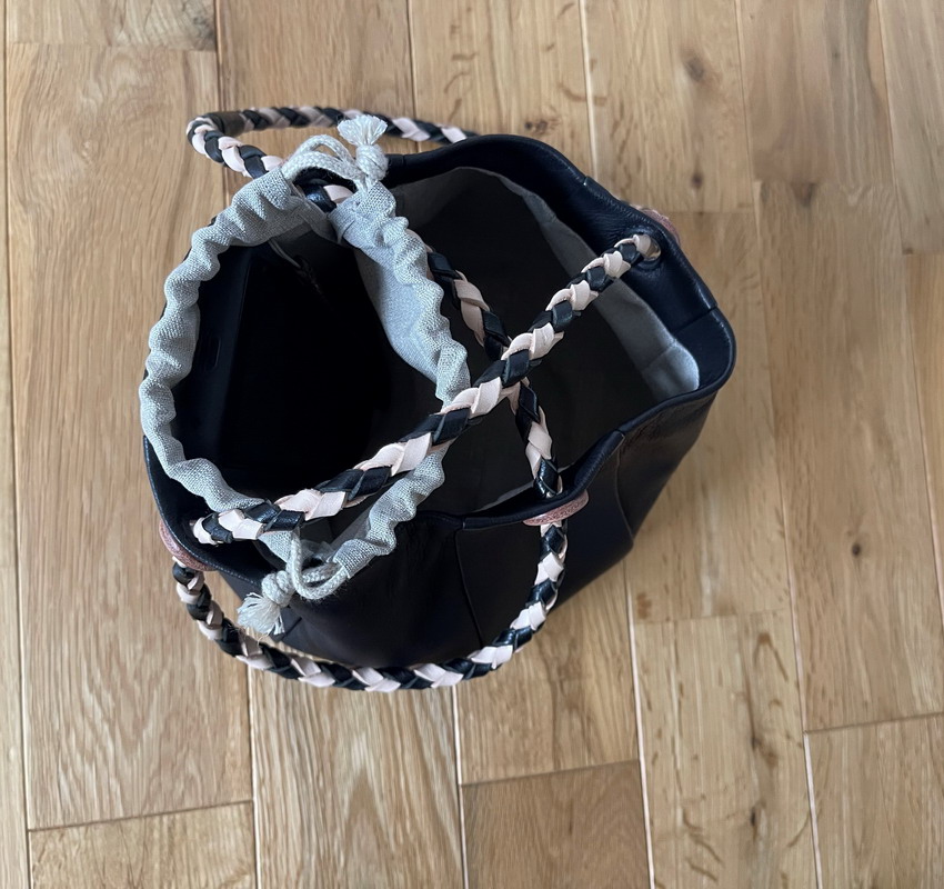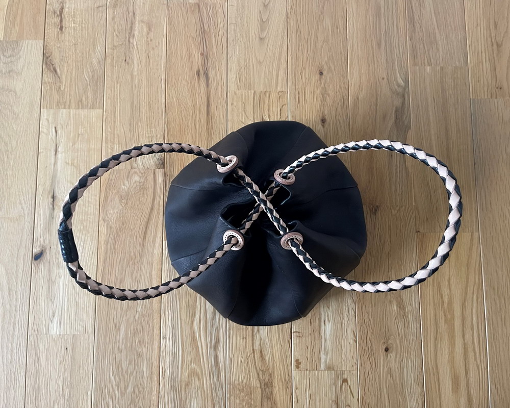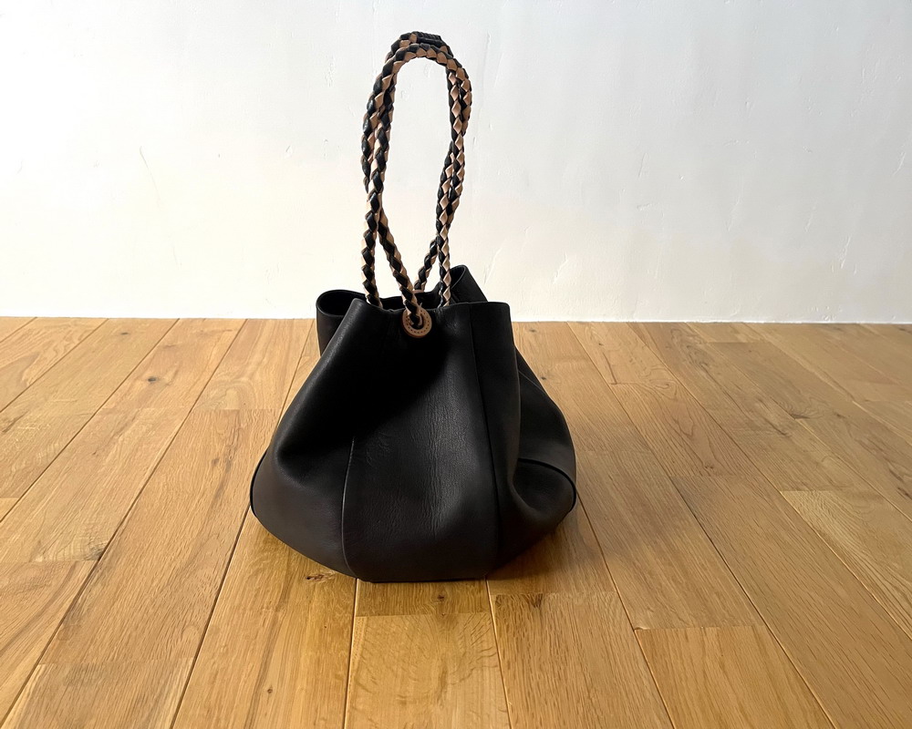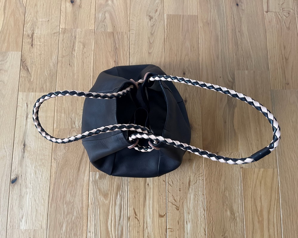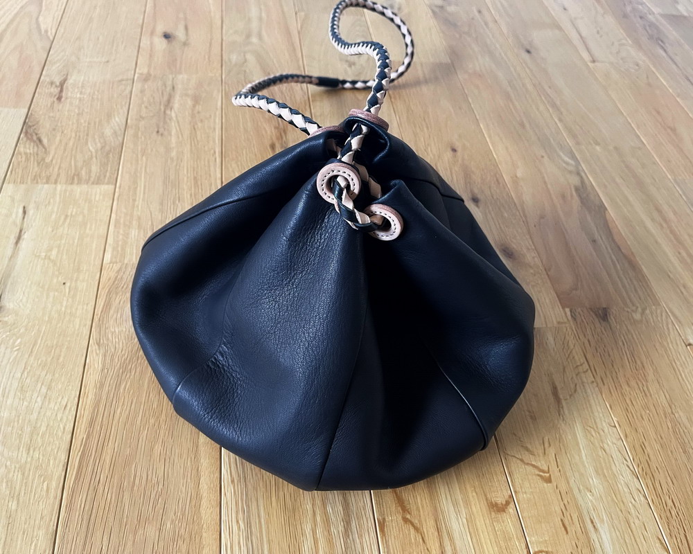 バッグ正面がないので、紐のどの部分を引っ張ってもアレンジができます。