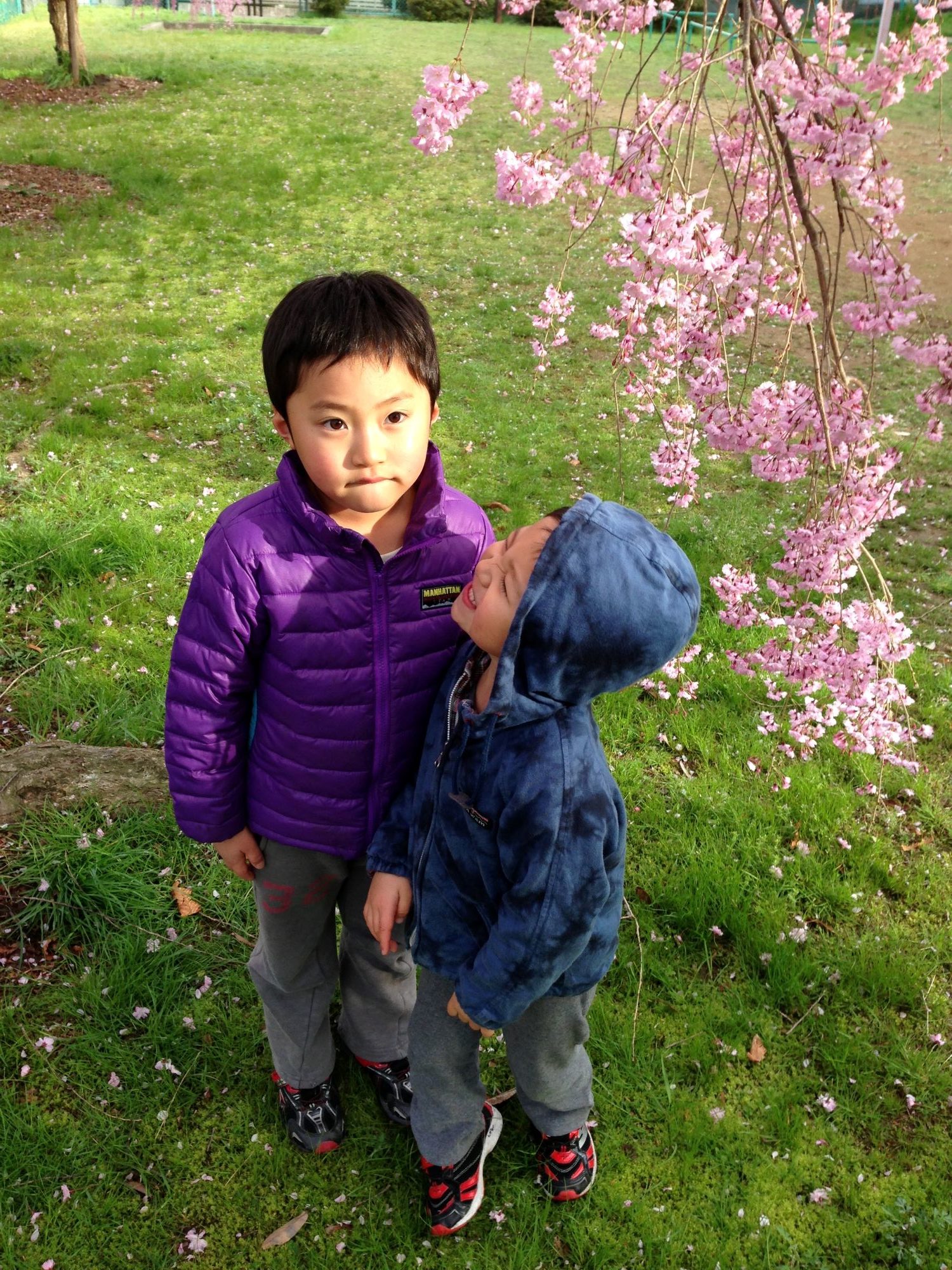 日曜日、近くの公園しだれ桜の木の下で記念撮影