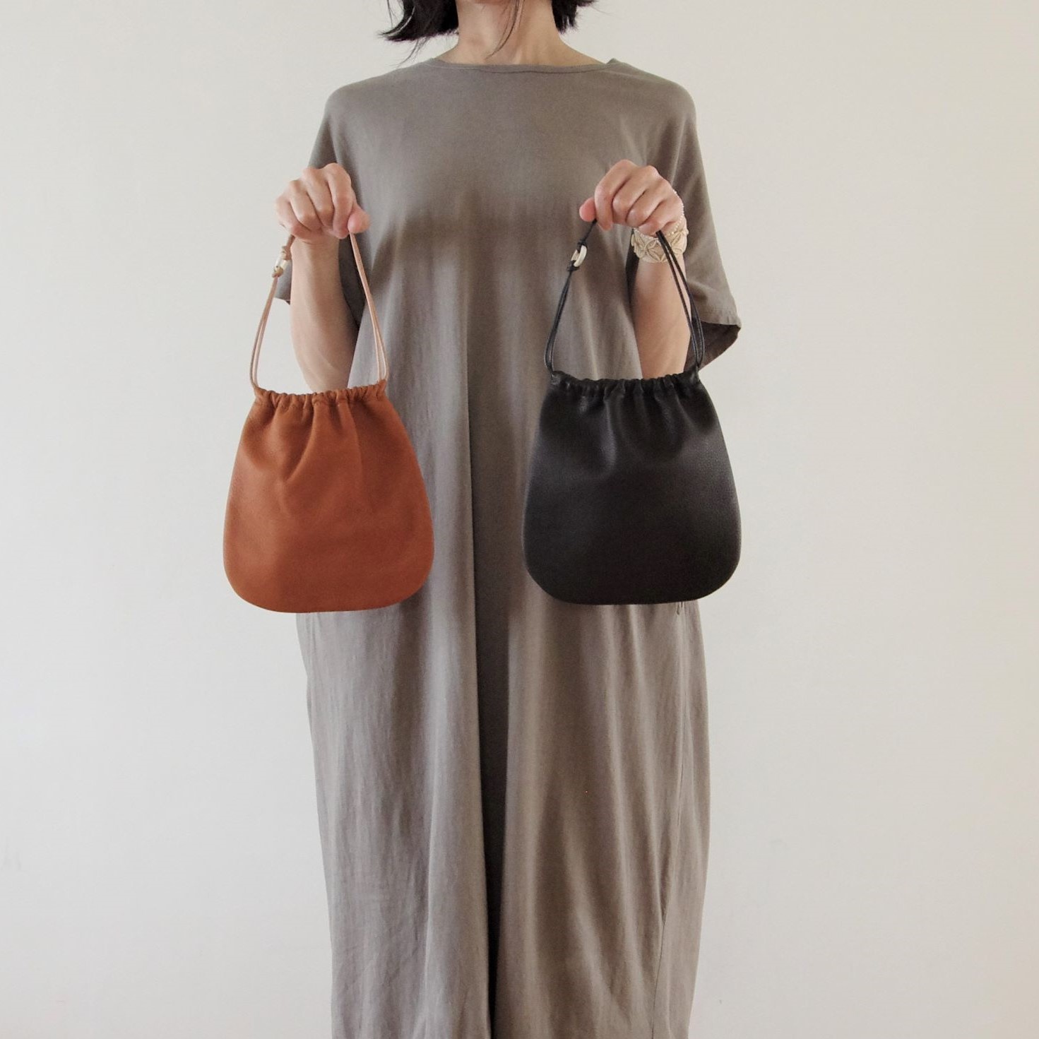 どちらのサイズも、紐の長さはオーダーで変更可能で、紐の短いタイプもあります。
