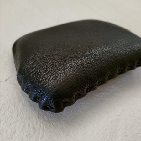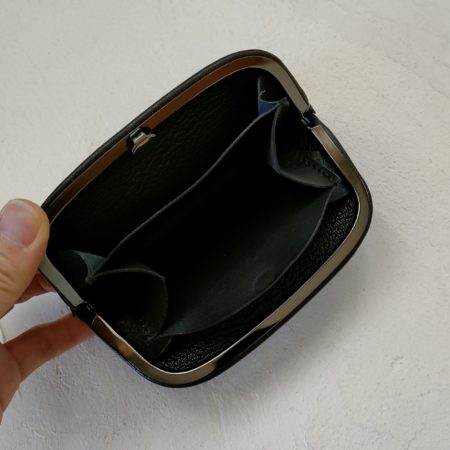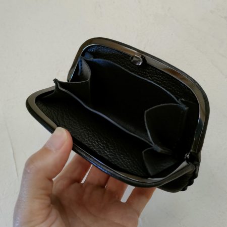 | 商品内容 | 艶やかで細かいシボが綺麗な山羊革の押口財布。 表革を貼り合わせているので内側も山羊革で、底は手縫いによりふっくらした立体に。口金のふちを持って中の留め具を押して開ける押口金具ですっきりとしたカタチです。 仕切りになるコインケースが付き、ワンアクションでカード、コイン、お札(折って入れます)にアクセスできます。 掌におさまるサイズでコンパクト。 ※カード・お札・コインを入れすぎると口金が破損する恐れがあります。 |